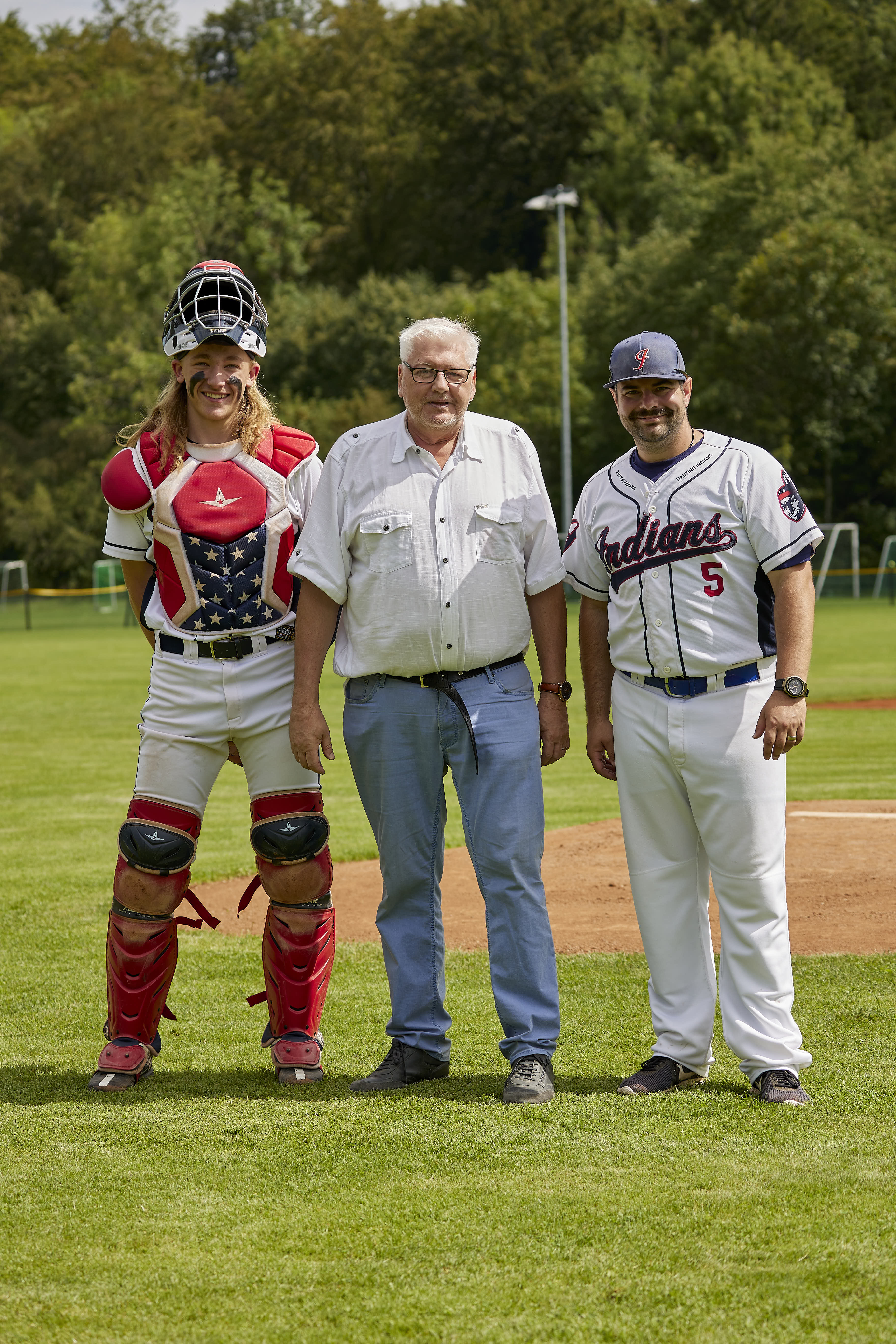 Am Samstag bestritt unsere Herren-Mannschaft das 2. Spiel der Best-of-3 Serie gegen die Neuenburg Atomics. Nach einem klaren Sieg im Hinspiel in Neuenburg, sollte nun der Halbfinaleinzug klargemacht werden. Dafür kamen über 150 Fans in den Würmtal Baseballpark und freuten sich auf ein spannendes Baseballspiel, welches durch den First Pitch von unserem zweiten Bürgermeister Dr. Jürgen Sklarek eröffnet wurde. Game 2 starteten die Gautinger so wie sie in Game 1 aufgehört hatten. So brachten die Indians gleich im 1. Inning 5 Runs gegen den Neuenburger Pitcher Heim und gaben so direkt den Ton für das Spiel vor. Philipp Kleehaupt, der als Pitcher bereits Spiel 1 in Neuenburg sehr erfolgreich geworfen hatte, war heute wieder in bester Form. Nach einer Woche Erholung gelang es dem 18 Jährigen Nachwuchstalent mit 3 perfekten Innings die Offensive der Atomics im Schach zu halten. So lagen die Gautinger nach 6 gespielten Innings mit 8:0 in Führung. Die Gäste gaben aber noch nicht auf und es gelang ihnen, nach ein paar Hits und Bunts auf 3:8 zu verkürzen. Danach übernahm Michael Hübner auf dem Mound für die Indians und brachte das Spiel souverän zu Ende. Den Neuenburgern gelang kein Run mehr und die Gautinger bauten ihre Führung noch weiter aus. Der verdiente Endstand war 11:3 für die Gauting Indians. Durch den Sieg qualifizierten sich die Indians für das Playoff-Halbfinale und sind damit dem Ziel “Aufstieg” einen weiteren Schritt näher gekommen. In der nächsten Runde wartet die zweite Mannschaft der Stuttgart Reds, die sich gegen die Füssen Royal Bavarians durchsetzen konnten. Game 1 der Halbfinalserie wird am 03.09. in Stuttgart gespielt, daher haben die Gautinger noch 3 Wochen Zeit sich vorzubereiten. Game 2 und Game 3 (falls notwendig) werden am 09.09. in Gauting stattfinden, also SAVE THE DATE. Unsere Jungs werden wieder jede Unterstützung gebrauchen können!